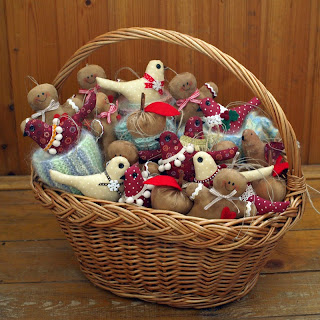 Все игрушки сшиты по Тильдовским выкройкам, покрашены кофе с ПВА и натерты ванилью с корицей для запаха.